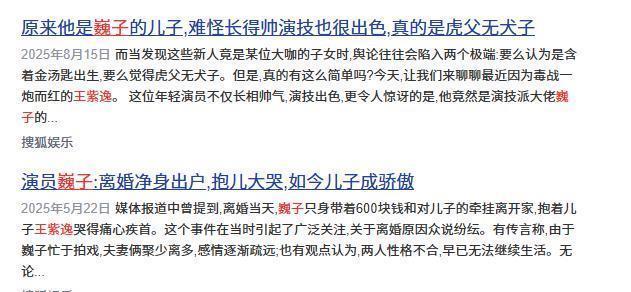 这话不是气话,之后王紫逸在演艺圈摸爬滚打,巍子真的一点忙都没帮,哪怕儿子走得再难,也绝不伸手。最让人唏嘘的,年两人合作《禁区》的时候。同一个剧组里,没人知道他们是父子——王紫逸全程称呼巍子“巍子老师”,语气客气得像对待陌生人;